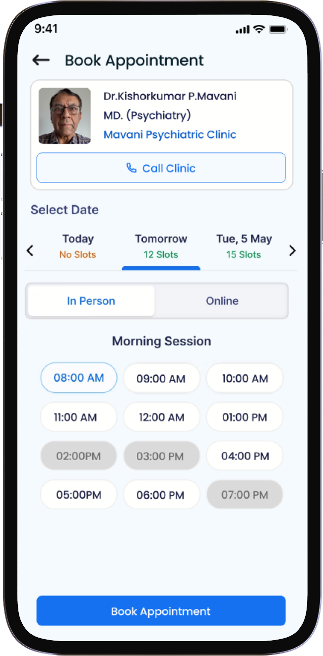Select The Available Slot Of Consultation, Pay Fees Online And Register The Name Of Patient.