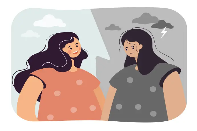 Feels extremely happy, over confident, or feels low, and depressed, mood swings, from depression to mania, up and down mood change in episodes.